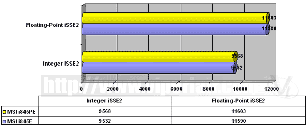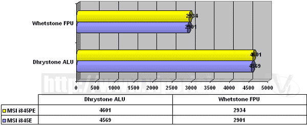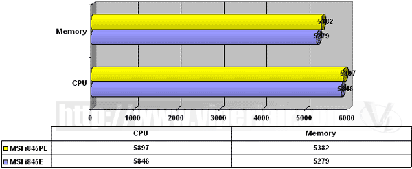 The scores between both motherboards are close. Be aware that the i845PE is run with the ram at DDR333. The added bandwidth seemed to have helped the overall CPU performance slightly.