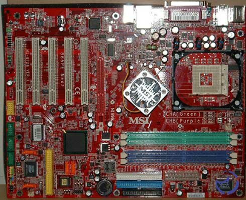The motherboard obviously uses the Intel 865 chipset (Springdale), as well as the ICH5. This allows for the major features of the 865PE Neo2 motherboard, such as dual channel DDR memory, which the PIV can use to its full; Serial ATA hard drive support from the ICH5 chipset which means that you don't need to have an add-in hard drive controller such as a Promise Serial ATA controller (which is also present).
