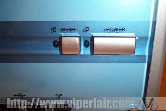 The power and reset buttons both have a nice feel to them. They don't feel very squishy, and make a reassuring click when depressed. They are accompanied by bright LEDs. The power LED is of the ultra bright variety, so no need to change that if you're a bright LED fan. Personally, I wasn't too wild about it since I prefer resting my PCs on my desk, and bright lights tend to annoy me. The HDD LED is a little more muted thankfully.