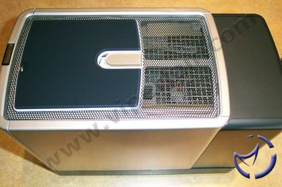 For cooling, there is a number of ventilation holes scattered throughout the Condor. We already pointed out the PSU exhaust on the rear, and to compliment it are holes on the bottom on the unit as well as the top. The Condor is designed to draw cool air from the bottom of the chassis and vent it through the top, and this is done via a Tai Sol CPU heatsink.