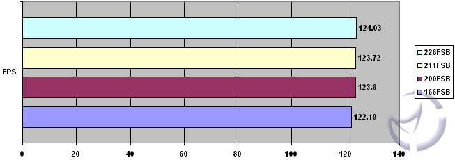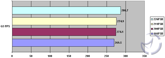 UT 2003 is more CPU dependent, but there are marginal increase in performance as we bump up the FSB. Quake 3, which likes fast ram, shows large gains with each increase in memory clock speed.