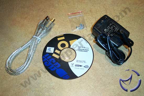 Other than the enclosure, we have a shielded USB cable, spec'd for high speed operation. A driver CD for Windows 95/98 is included, in case you're lacking the drivers. Windows versions post 98SE are all supported natively. Rounding things out are installation screws and the power adapter. The power adapter is one of those blocky ones, which is a bit of a bummer as it will take up at least two spots (due to its girth) on most standard power bars.