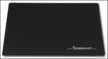 Opening the box reveals white polystyrene to protect the IceMat during shipping, and opening this presents you with the IceMat itself. Despite the white box and Ice name, the IceMat we have here today is not the original white/clear glass mat, but IceMat's "After Dark" Black surface. The IceMat is made from glass and retains a generic oblong shape and size as found on any generic cloth mat. The surface of the IceMat has been designed to grip the mouse ball beyond that of other mousing surfaces, as well as provide a frictionless surface to glide your mouse across.