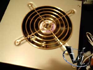The next thing that I noticed after taking the PSU out of its wrapping was the gold fan grills. There are 2 fan grills on here, one on the back for the manually controlled 80 mm Exhaust fan and one for the 92 mm thermally controlled fan underneath. Taking a good look at the fans I noticed that the 92mm fan was sporting clear fan blades. Very cool and sexy looking, and reeking of quality. It's a little irrelevant for most end user's however due to the fact that chances are the fan wont be seen once installed, but for those of you with case windows and neon's, the combination of the fan grills and the clear fan will make for extra pose value.