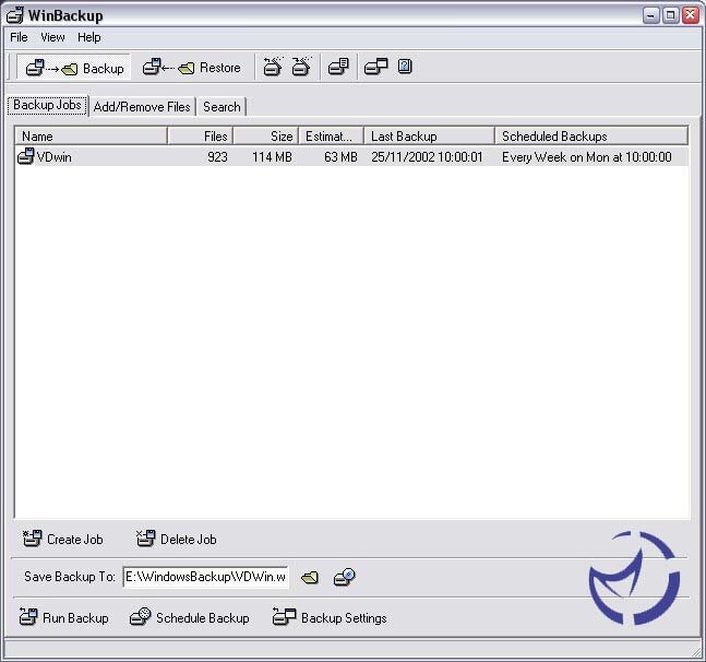 Compression (which is calculated on the fly) is also available to help reduce the filespace needed and up to 256bit encryption for those of you with a need to secure there data. Scheduling the backups makes the program a set and forget affair, and there's nothing to stop you running multiple schedules for multiple jobs. Obviously the best option would be to backup to some form of removable media such as a CDRW or DVD-RW and Winbackup accommodates here too with an integrated CD authoring option. If this isn't an option, you could even backup to a network folder, basically anywhere you could possibly save files, Winbackup can be scheduled to save to. Winbackup produces detailed logs, so you can easily see what is actually in the current backup via the log file.
