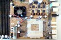 Looking into the zif socket of this board you can see the thermister for the temperature of the CPU to be taken. So for those of you using an Athlon XP the internal diode, even though board is capable of using it, is once again useless. With a board this far thinking in its design this would have been a very nice feature to see, but alas it isn't so. Speaking of Athlon XP's, at time of writing this, the latest bios has support for the Thoroughbred XP's. Looking around the socket you can a very nice holographic tape strip to help protect the traces underneath from screwdrivers if you slip whilst attaching a HSF. The socket itself is also at the very top of the board which is a great place to put it. HSF wise, the mounting points for the Alpha's and Swiftech's that use them are here, and there is plenty of room to use such a cooler. You can also see the 6 MOSFETS here once again indicating the 3 phase power design which should aid in overclocking and general stability. There is a nice gap between the capacitors here, strategically placed so that there is plenty of room to get to the clipping mechanism of a standard HSF. The Northbridge is actively cooled again this being something that Abit introduced and continues to use.