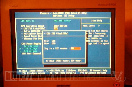 This is an Abit board, and as such they have expectations and a reputation for a good bios full of features and tweakable options. Well, you won't be disappointed here. Being a KT333 motherboard, the Bios includes the 1/5 divider, so if you want to run your CPU at 166 FSB, but your PCI cards don't like it they can easily be made comfortable again. The FSB on this motherboard goes to an incredible 250 MHz, which may seem like overkill, but with the pace that the PC enthusiast world continues to set, it could be a useful feature later on assuming AMD release further chips that are seriously overclockable. There are people who have set 200+ FSB successfully so this would certainly appeal to them. Being able to key in an FSB choice is great, and a lot easier and quicker than going through a list of numbers to get to the last one.
