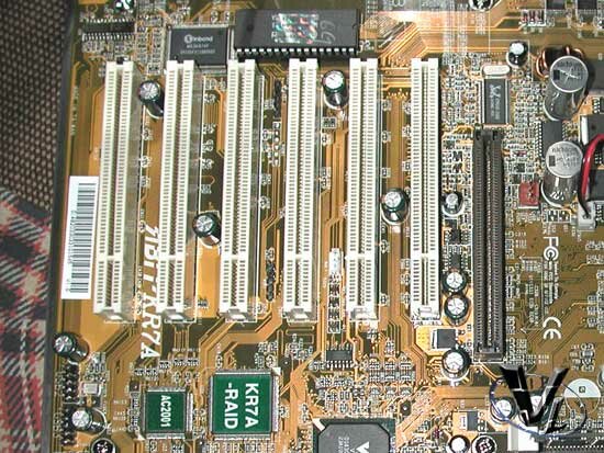 Another strange placement, is the IRDA header. This is placed between the third and fourth PCI slots, so if you have a card that doesn't have a cut out in that area, and you are using that slot, then you can't use the header.