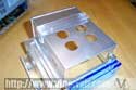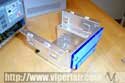 Removing a couple of small screws allows for the HDD rack to be removed. The stock rack can be outfitted with either a floppy, hard drive and optical drive, or two hard drives and an optical drive. As we've already mentioned, the lack of ventilation or front mounted fan would make me wary of running dual 7200RPM drives. The rack also has an IDE cable management clip, which will securely lock in the HDD cable. The clip isn't too strong though, so you'll have to be careful about snapping it if you forget to remove the cable while pulling the HDD rack out.