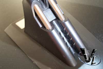 There is a valley of plastic "teeth" to grip the mouse cord. The grip is fairly secure for the most part, but I found that if we moved the Bungee around too much, the cord would pop out. Up until I received the Bungee, I always thought the rods that secure the mouse cord were solid metal. As you can see in the picture above, they're actually coils.