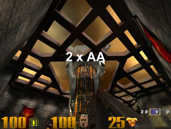 I really like the 4 x AA, but it was fairly choppy while playing. Sure, standing still looks nice and steady, but doing that long enough will leave you staring at the ceiling, hehe, erm..., you know, you stand there? Get shot? Die? And end up looking at the ceiling? Nevermind...