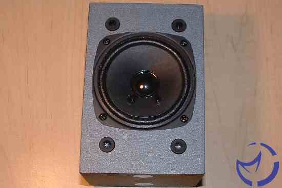 Looking at the speaker itself we see one interesting fact, there is no tweeter included with the speaker. The actual woofer is full range and is 3.5" in size, using a paper coil. The casing is very small, smaller than most computer speakers, but still larger than the little cubes that some computer speaker systems use. Supposedly there is two different speakers, one for the center speaker and one for all the rest of the speakers, but I couldn't tell the difference between them. Marking the speakers, or at least the center channel would be a very good idea here. All the speakers are magnetically shielded, so putting them next to your monitor or anything else that is sensitive to a magnet is okay. The speaker cabinet itself are made of the wood that many good speakers are made of, MDF, which is held together with a generous amount of glue as you can see in the bottom middle picture. The back of the speaker uses a quick connect speaker connector. The grill is nothing unusual just a standard plastic grill with a cloth cover.
