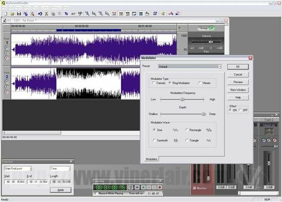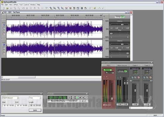 You can rip straight from a CD into the program, and as MySoundStudio can save out as MP3's you can use the program to store a local copy of your favourite songs with ease. The program is a bit expensive to use this just for ripping the latest Britney album though and would be a waste of all the other more advanced features the program has. But perhaps you have a party arranged and don't want to spend all night playing D.J. Rip your songs from CD to MP3, equalize the sound levels and create a playlist in your favourite MP3 player. You wouldn't even have to adjust the volume; just hit play and party all night long. You could even if you were so inclined cross fade all of the tracks you want into one big song, save it as a .WAV file, burn it to CD, instant party mix! Or how about this, want to cross fade 2 songs, using the beat of one to carry the other, but the tempo is at different speeds. Easily fixed; you can adjust the timing of one song to match the other.