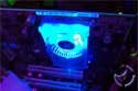 Cooling is provided by a very nice looking aluminum heatsink and fan combination and translucent shroud. For the case modder in all of us, the fan is of the LED variety, and casts a nice blue glow when powered on. The fan itself is not directly above the VPU, but rather, it is above it. The entire cooling scheme works on a "duct" concept, and the off-centered fan will create more airflow to cool the fins cooling the VPU than it would had it been directly above it.