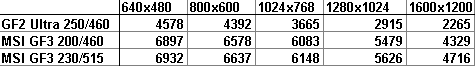 Before I get into the bechmarks though, I do want to say that like CPUs, video cards will eventually degrade over time if you overclock it. It's never happened to me, but I see a lot of images or read stories of image corruption after a year of oveclocking, and the video card continues to do so even after clocking it back. This happens to CPUs as well, but usually not as quickly. Performance gains are negligable in real world apps, and I don't think it's going to make much of a difference whether you overclock or not. But hey, it's your 350$ GeForce 3, so it's up to you.