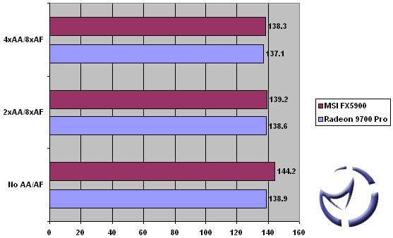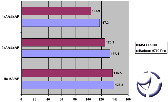 The GeForce FX5900 takes the Jedi Knight II contest by the skin of it's teeth. Except of course at 1600x1200 where it just couldn't keep up with the Radeon 9700 Pro as we increased AntiAliasing.