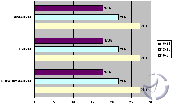 We've left out the 4xAA/8xAF results here because we were running into the same problems as the Quake 3 Engine games. The memory buffer was getting saturated, leaving us with results in the vicinity of noAA/noAF. This was the case for both cards this time around.