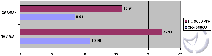 This last set of UT2003 benchmarks lead us to conclude that at least for this game, the XFX 5600 Ultra is not up to FIC 9600 Pro when it comes to high AA/AF.