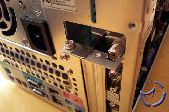 The above images are from our AIW 9600 Pro review, but the situation is the same with the XT card. The FM-Tuner, being at the top of the backpanel, cannot fit through PCI slot backpanels that are tapered (which happens to be the case most of the time). In mini to full tower cases, this shouldn't be a problem as the PCI backpanel tends to be a bit longer before tapering, but not so on SFFs.