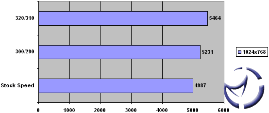 We managed to get as high as 320/310, but although the benchmarks completed, there was a lot of image tearing and corruption. Backing down to 305/300 cleared the problems, but after a few hours, we began to experience occasional lockups… during TV viewing! We lowered the speeds down a little more, and everything was fine at 300/290.